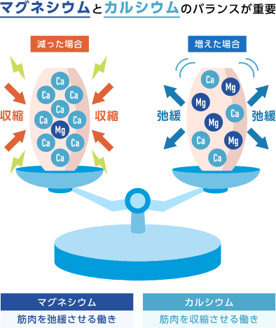 ① 筋肉の収縮と弛緩を調整する「Ca」と「Mg」